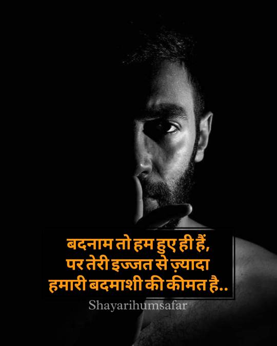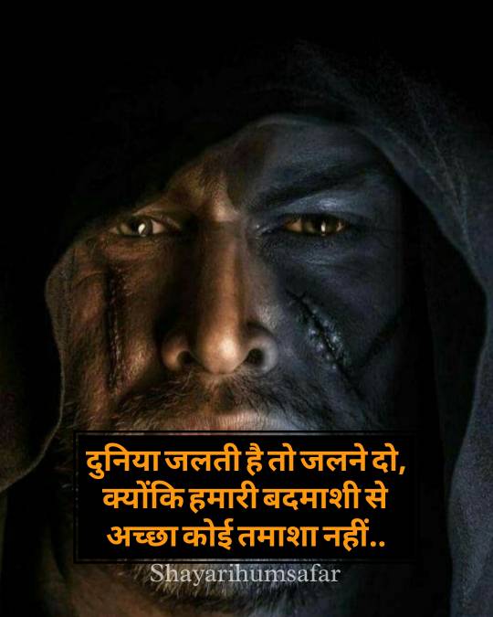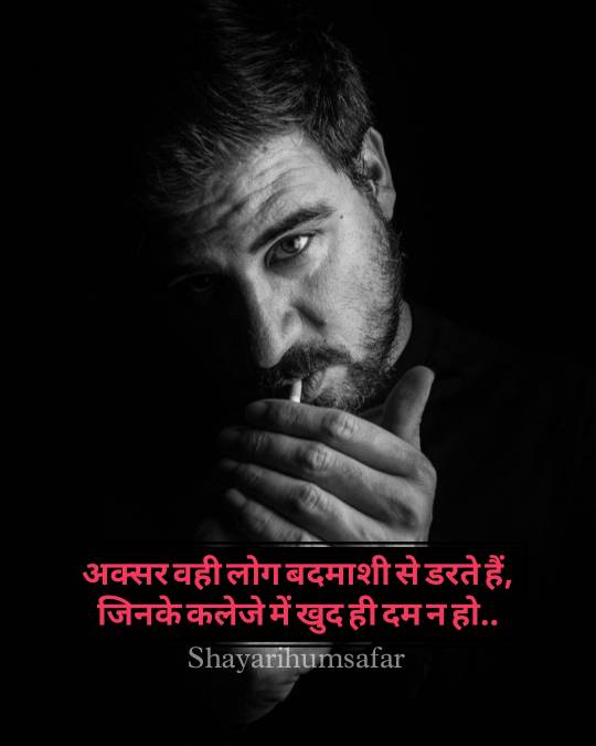 कुछ लोग गुंडागर्दी से अपनी पहचान बनाते हैं तो कुछ गुंडागर्दी से अपना ऐटिटूड बरकरार रखते हैं। अगर आप भी अपनी पहचान और ऐटिटूड बरकरा रखना चाहते हैं तो आपको इस पोस्ट को जरूर पढ़ना चाहिए। हमने यहां पर कुछ खास लोगों के लिए Gunda Gardi Shayari शेयर करी है। यह गुंडा गर्दी शायरी उन लोगों के लिए है जो अपना ऐटिटूड पहचान और अपना दबंग स्टाइल बरकरार कर रखना चाहते हैं। Gundagardi Shayari Attitude दबंग अंदाज़ और शेरदिल स्टाइल दिखाने का सबसे अनोखा तरीका है।यहाँ पर आपको पढ़ने को मिलेंगी एक से बढ़ कर एक Gunda Gardi Shayari, ➡ 30 तो बस 👉 आपकी😉 अभ्यस्त 🔫 शैली 🔜😈 मेरा शौक़ीन वो तो आज😏 भी तेरी गुंडागर्दी स्टुटा, अगर आपको भी गुंडागर्दी शायरी पढ़ने का शौक़ है तो इस पोस्ट को पढ़कर यहां से किसी भी शायरी को कॉपी करके अपने इंस्टाग्राम फेसबुक और व्हाट्सएप पर शेयर करके आप अपना दबंग स्टाइल और ऐटिटूड सबको दिखा सकते हैं।