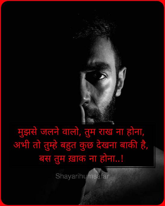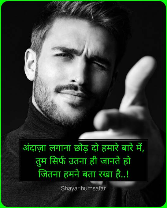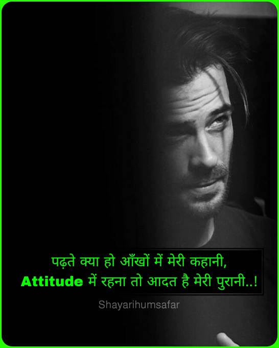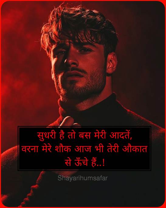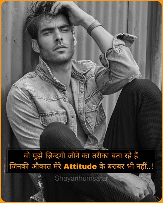 दोस्तों अगर आप सीधे साधे है तो आपको हर कोई हलके मे लेसकता है अगर आप लोगों को ऐटिटूड दिखाएंगे तो आपसे पंगा लेनेकी सोचेगा भी नहीं इसलिए सभी को थोड़ा बहुत ऐटिटूड रखना जरुरी है, आप इस Best Attitude Boy Shayari 😎🔥को पढ़ोगे तो आप में थोड़ा बहुत तो ऐटिटूड आही जाएगा। आजकल लोग इस तरह की Stylish Attitude Shayari In Hindi अपने व्हाट्सप्प स्टेटस पर लगाना सबूत पसंद करते हैं तो आप भी इस लिस्ट मेसे एक बढ़िया शायरी कॉपी करें और अपने फेसबुक, इंस्टाग्राम, व्हाट्सप्प स्टेटस पर लगाइये।