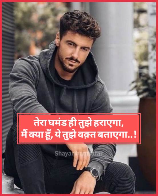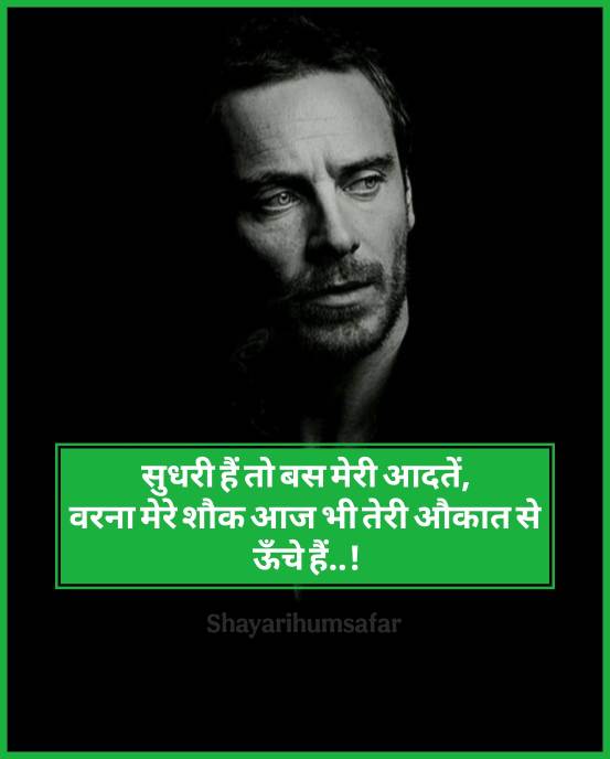 दोस्तों मैं आज आपके लिए एटीट्यूड शायरी का सबसे बेस्ट कलेक्शन शेयर करने के लिए उत्साहित हूं, अगर आप भी मेरी तरह एटीट्यूड शायरी के दीवाने हैं तो आपको यह पोस्ट सबसे ज्यादा पसंद आएगा। आपको यह पर दमदार एटीट्यूड शायरी पढ़ने को मिलेगी (शेर 🐅 के #पाँव ☝ में अगर #काँटा_चुभ जाए, 😒 तो #उसका 😌 ये #मतलब_नहीं 😏 की अब #कुत्ते 🐕 #राज_करेंगे) इसी तरह की एटिट्यूड शायरियां हमने यहां पर दी है जो आपके स्टाइल और पर्सनालिटी को सबसे ज्यादा सूट करेगी। दोस्तों एटीट्यूड शायरी अपने एटीट्यूड को सबके सामने बयां करने का सबसे बेहतर तरीका है, यह एटीट्यूड शायरी अपनी पर्सनालिटी और स्टाइल को शानदार तरीके से अपने जलने वालो तक पहुंचातीं हैं जिसमें अपना एटीट्यूड छलकता है, यही तो एक स्टाइल है अपने दुश्मनों को जलाने का, अगर आप भी अपने एटीट्यूड से किसी को जलाना चाहते हैं तो यह Attitude Shayari की मदद से आप अपने जलने वाले को और जला सकते हैं।